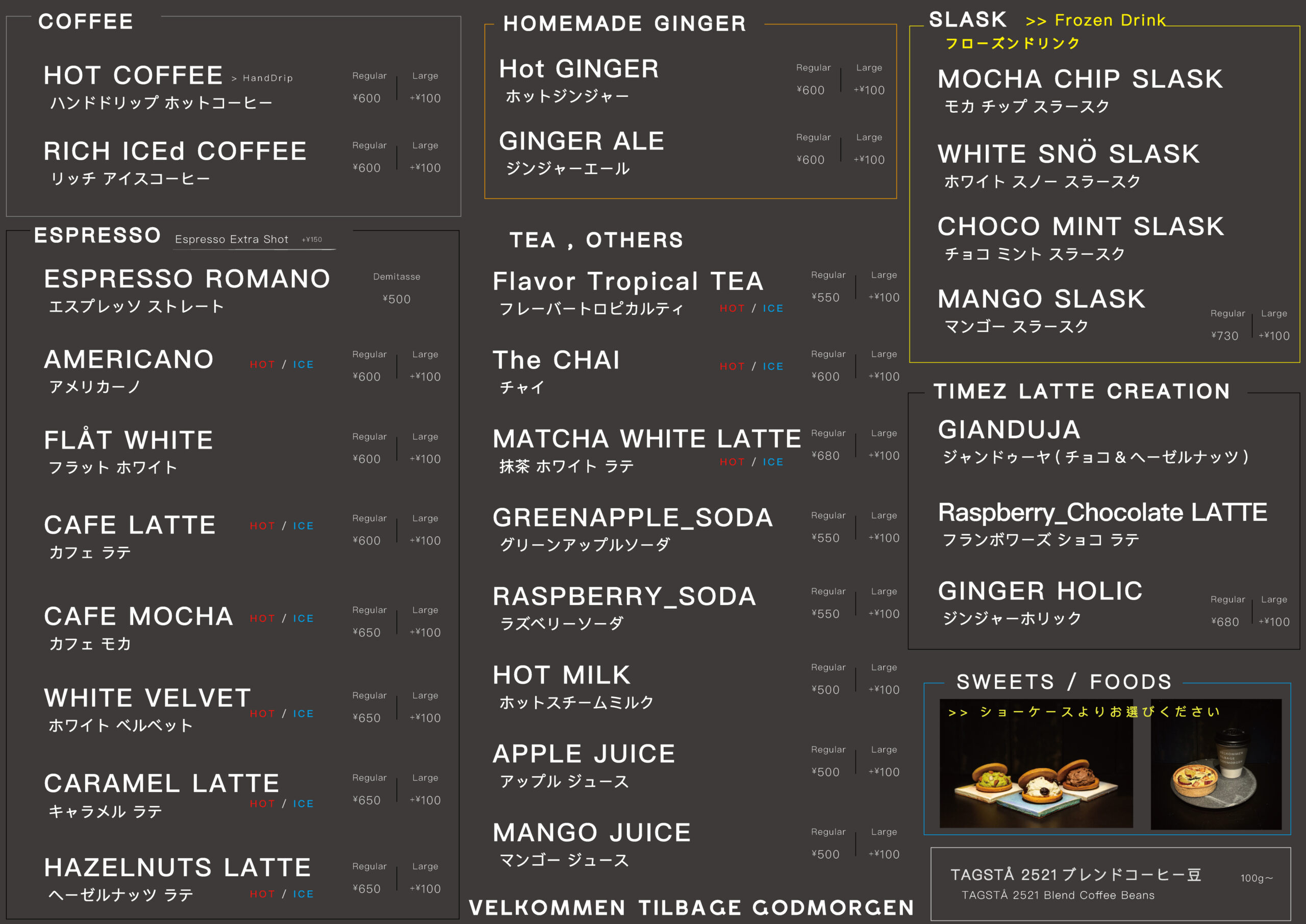 인기 있는 에스프레소 스탠드/갤러리 "TAG STÅ"가 프로듀스하는 "TIMEZ"에서는 이른 아침부터 커피&모닝을 즐길 수 있습니다. 호텔 라운지에서의 편안한 시간에는 정성스럽게 추출한 에스프레소로 만든 음료를 준비하고 있습니다. 숙박 고객이 아니어도 이용이 가능합니다. 부담 없이 방문해 주세요.